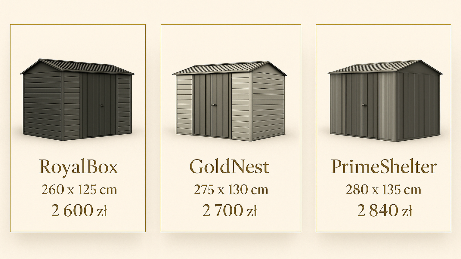 ⭐ Dlaczego warto nas wybrać ✅ Trwałe materiały premium – konstrukcje z wysokiej jakości blachy, odpornej na wilgoć, rdzę i zmienne warunki pogodowe ✅ Nowoczesny styl – elegancki design, który dopełni każdy ogród – zarówno klasyczny, jak i minimalistyczny ✅ Montaż bez stresu – intuicyjna konstrukcja, dzięki której złożysz domek samodzielnie w kilka godzin ✅ Ekspresowa realizacja – większość modeli wysyłamy w ciągu 48–72 godzin ✅ Obsługa z klasą – doradzamy na każdym etapie, również po zakupie